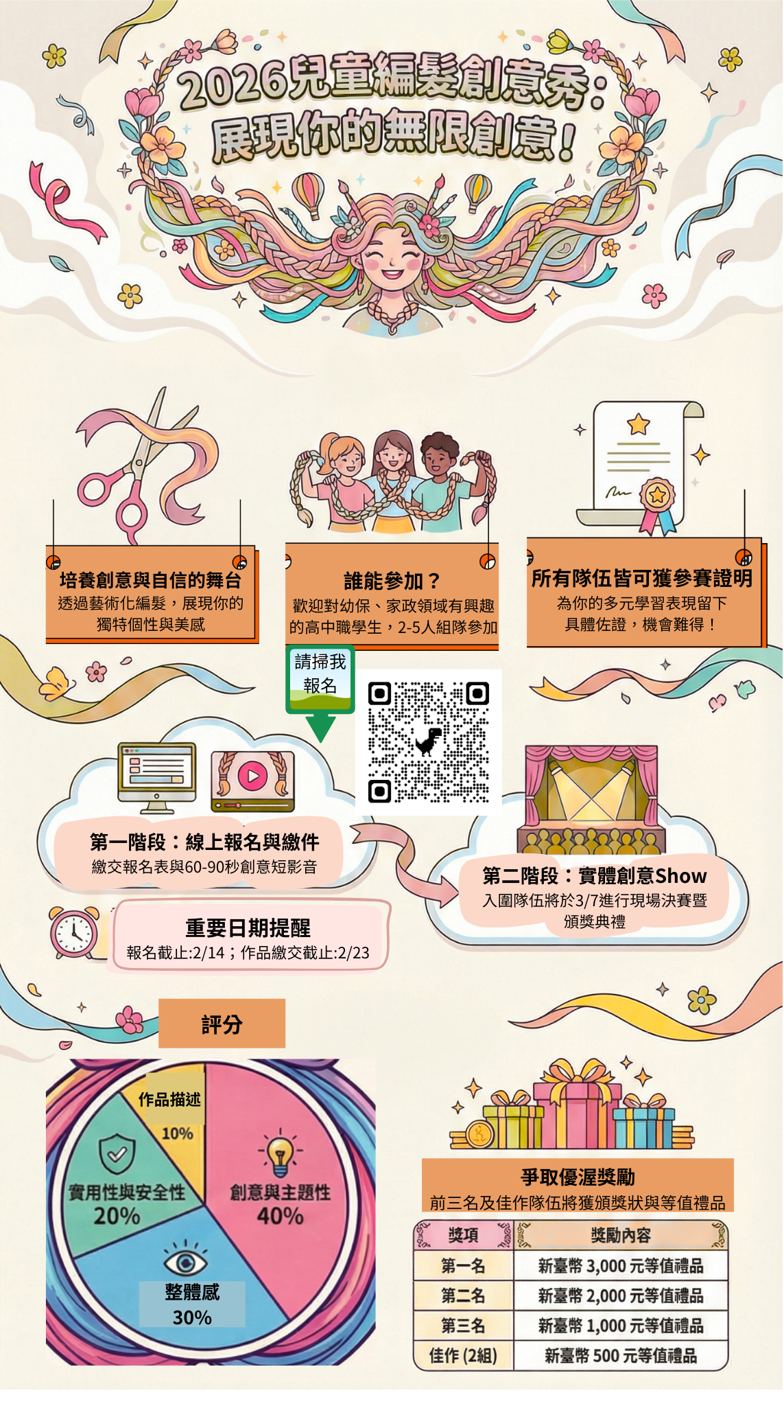 (四) 兒童編髮創意show日期與地點:115年3月7日(六)上午09:30-11:30。