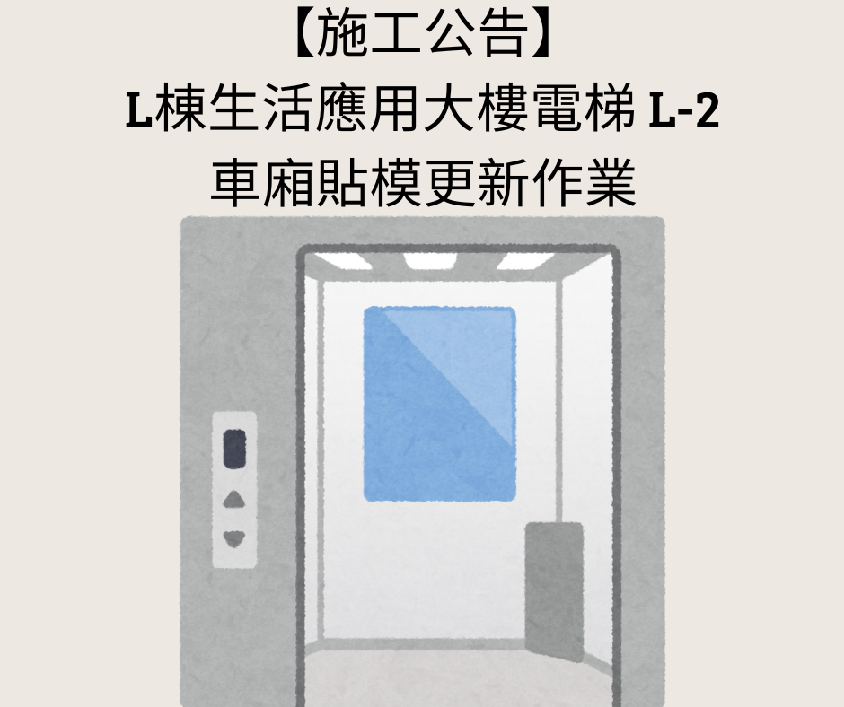 【施工公告】L棟生活應用大樓電梯 L-2 車廂貼模更新作業